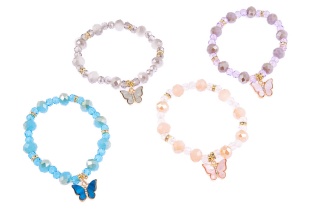Bransoletka pięknie się mieni i posiada uroczą przywieszkę w kształcie motylka i serduszka.