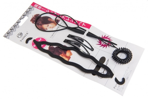 Zestaw akcesoriów do włosów, który ma ułatwić wykonanie ciekawej fryzury.