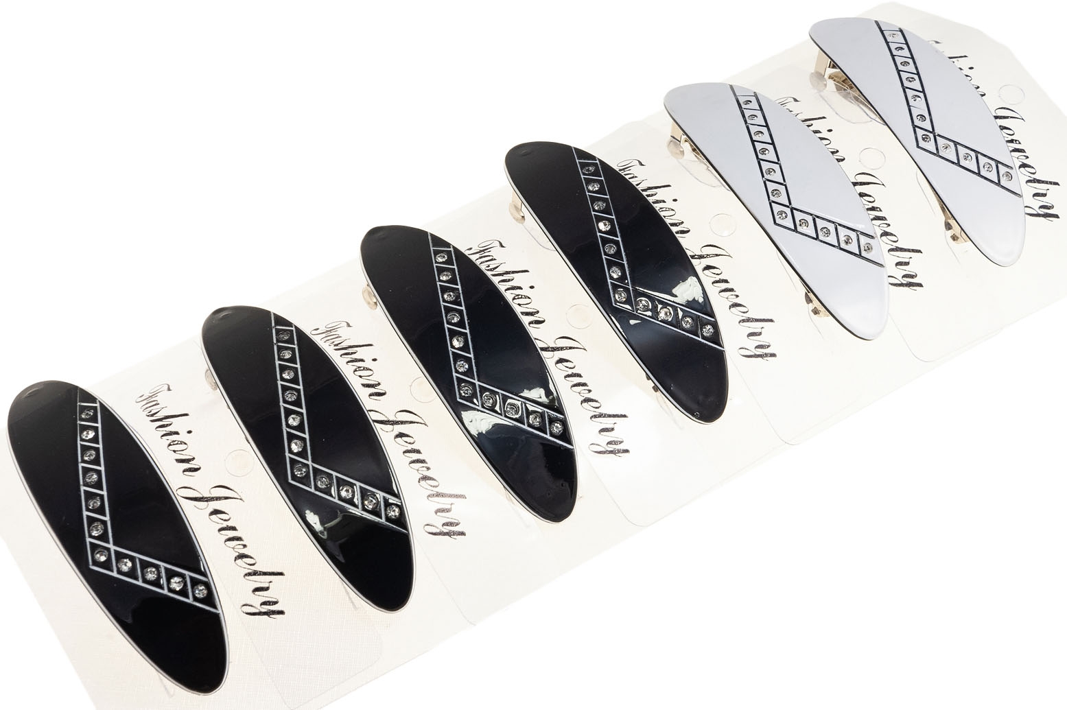Spinka do włosów (automat) dobrze trzyma włosy. Spinki w kolorze czarnym i białym.