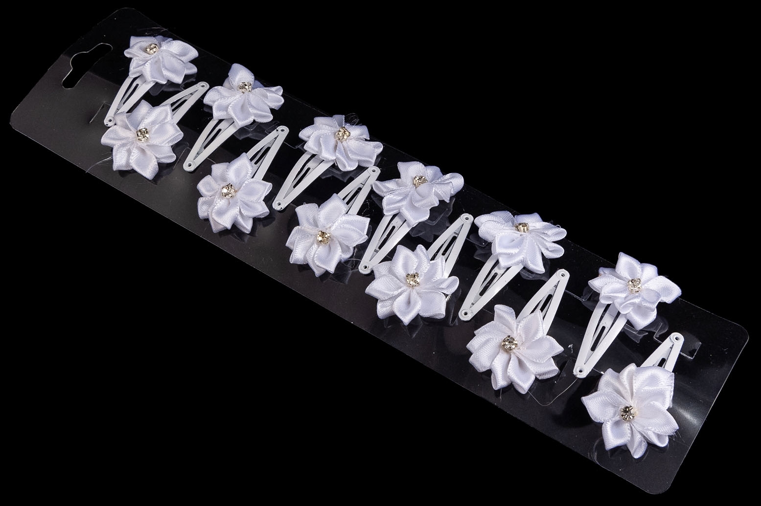 Klasyczne spinki do włosów z uroczą ozdobą w kształcie kwiatka.