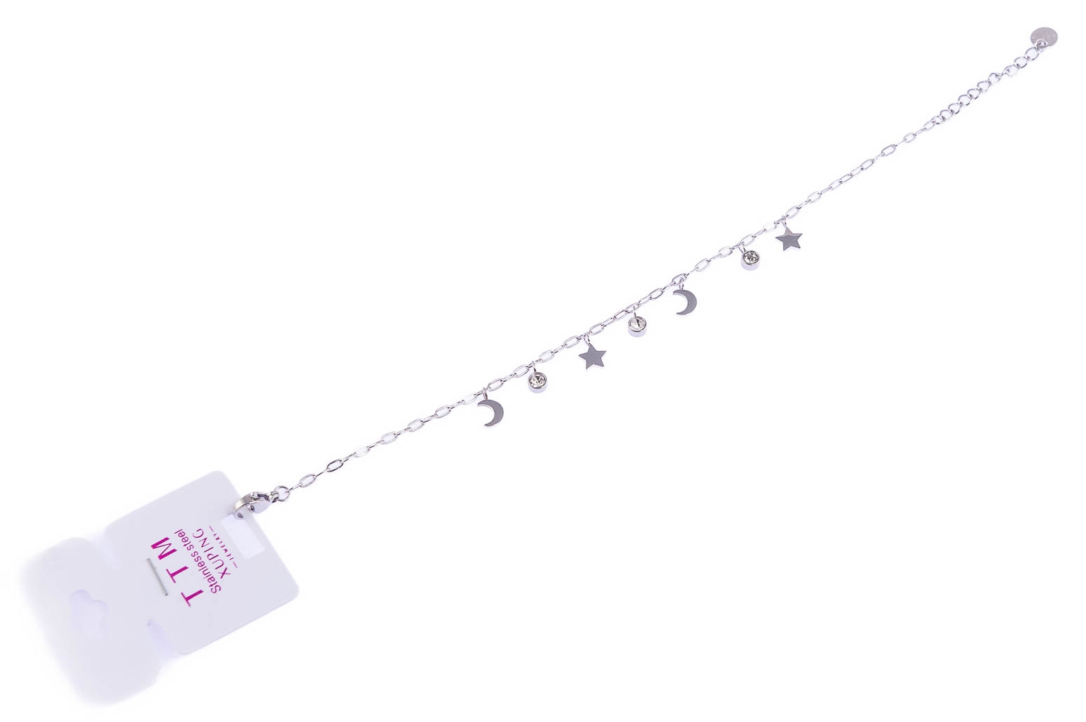Elegancka bransoletka ozdobiona gwiazdkami, księżycami i dżetami. Bransoletka jest w kolorze srebrnym.Wymiary bransoletki: