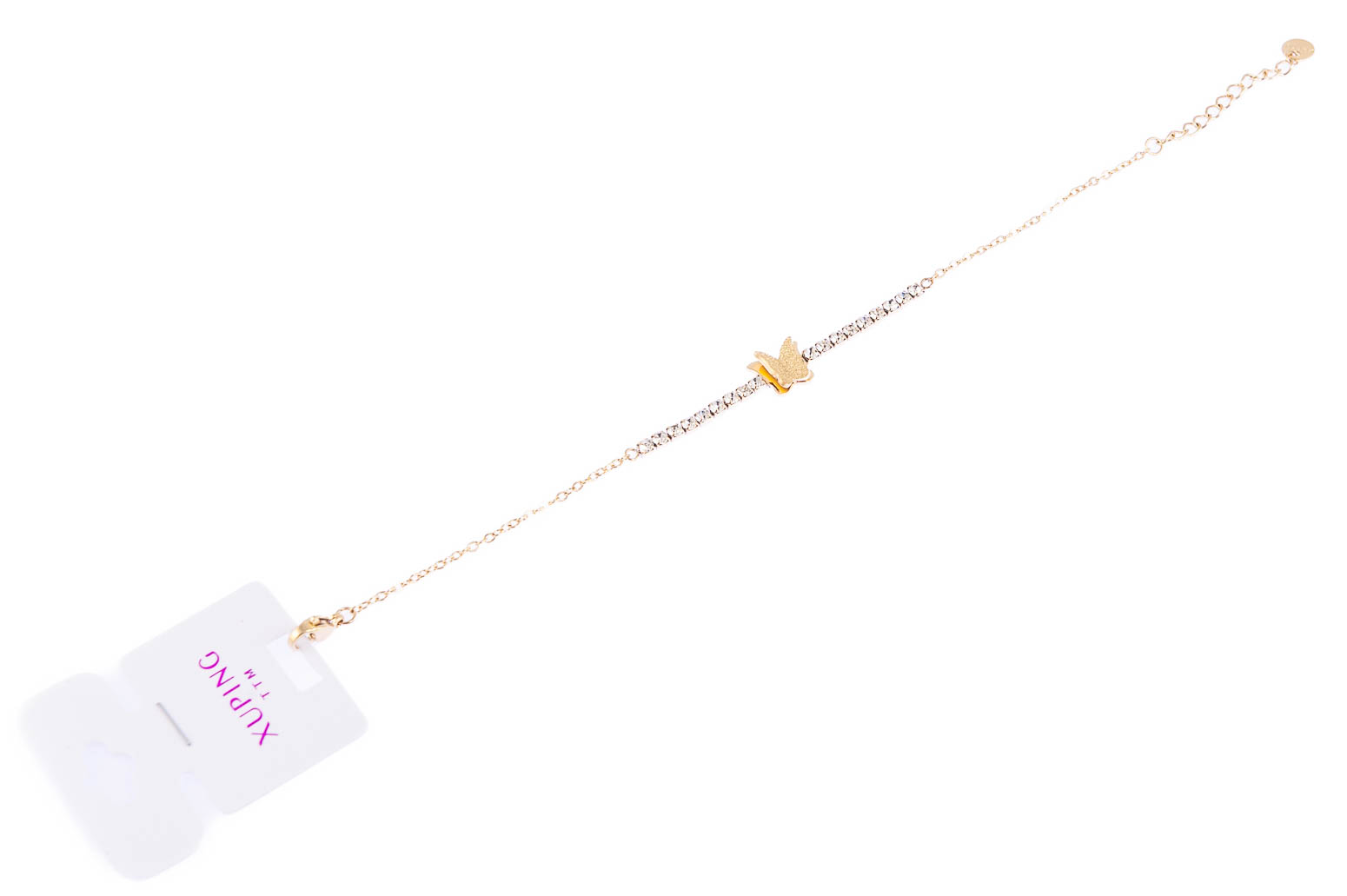 Elegancka bransoletka z uroczą ozdobą w kształcie motylka. Bransoletka jest w kolorze złotym.Wymiary bransoletki: