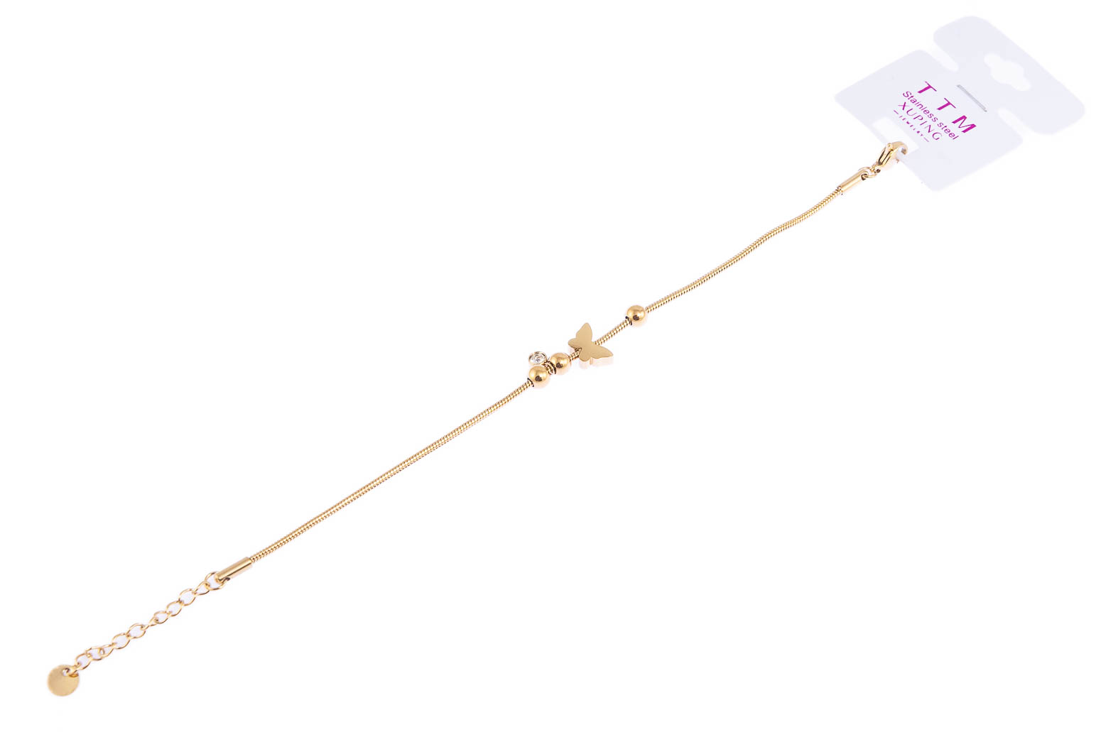 Elegancka bransoletka z uroczą ozdobą w kształcie motylka. Bransoletka jest w kolorze złotym.Wymiary bransoletki: