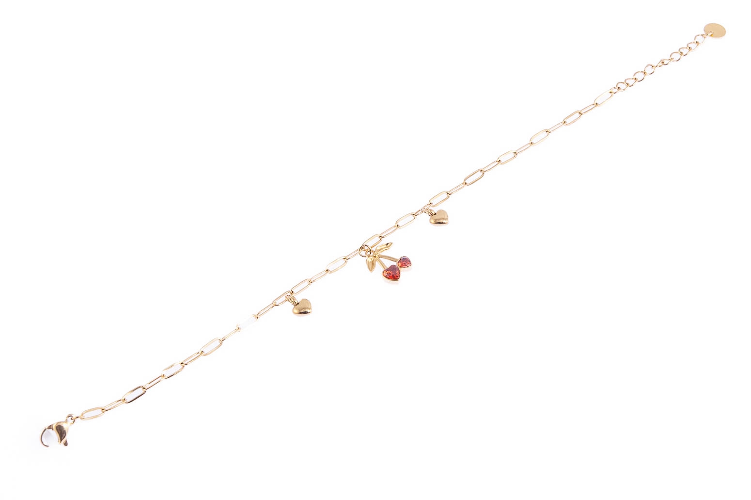 Elegancka bransoletka z uroczymi ozdobami w kształcie wisienek i serduszek. Bransoletka jest w kolorze złotym.Wymiary bransoletki: