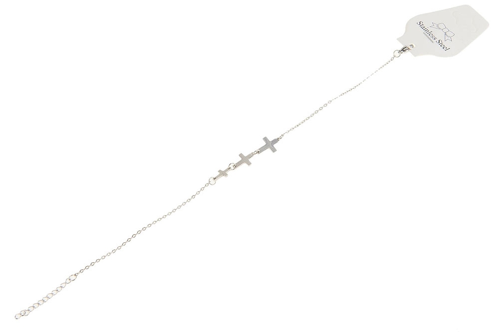 Elegancka srebrna bransoletka z ozdobnym elementem w kształcie krzyżyków.