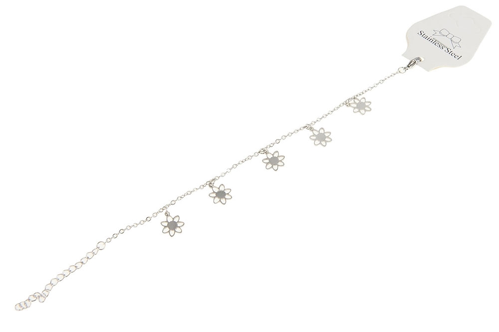 Elegancka srebrna bransoletka z ozdobnym przywieszkami w kształcie kwiatków.