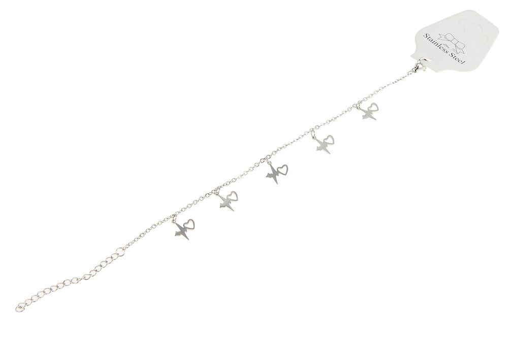 Elegancka srebrna bransoletka z ozdobnym przywieszkami w kształcie serduszek.