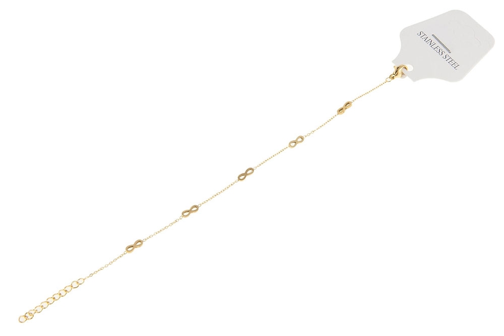 Elegancka złota bransoletka z ozdobnymi elementami w kształcie nieskończoności.