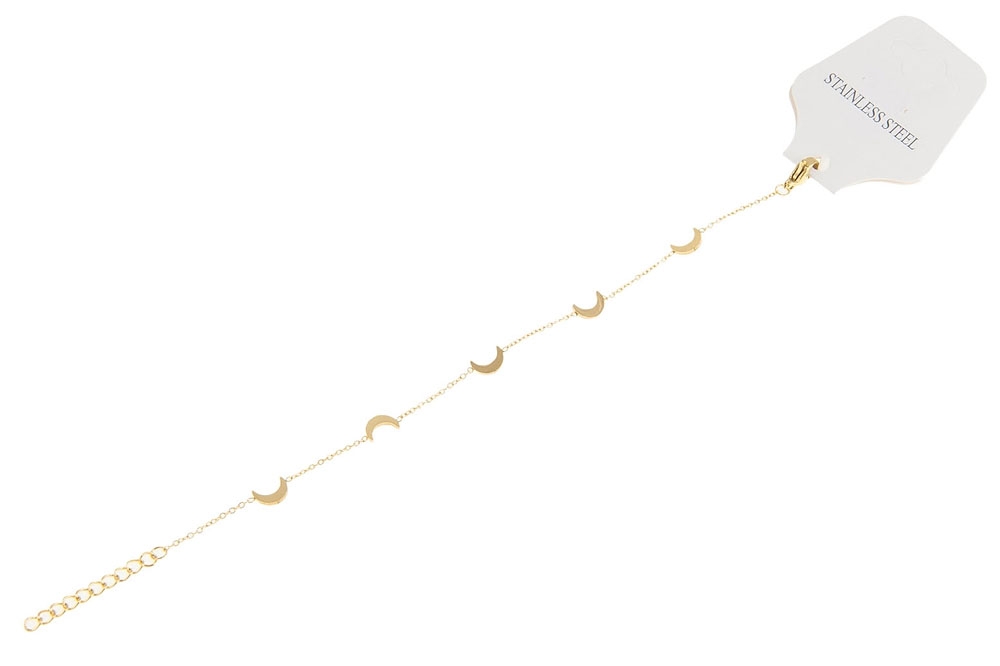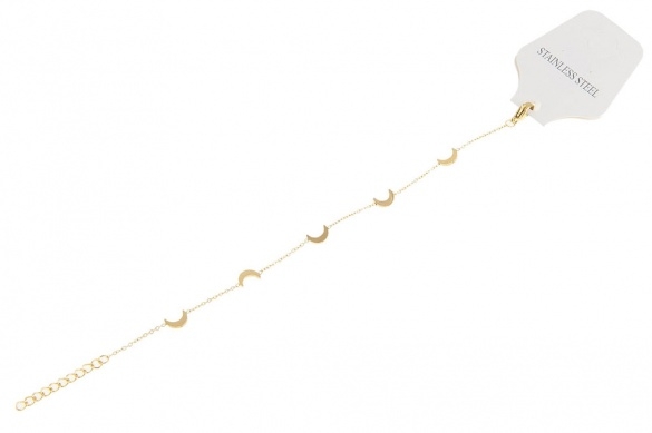 Elegancka złota bransoletka z ozdobnymi elementami w kształcie księżyców.