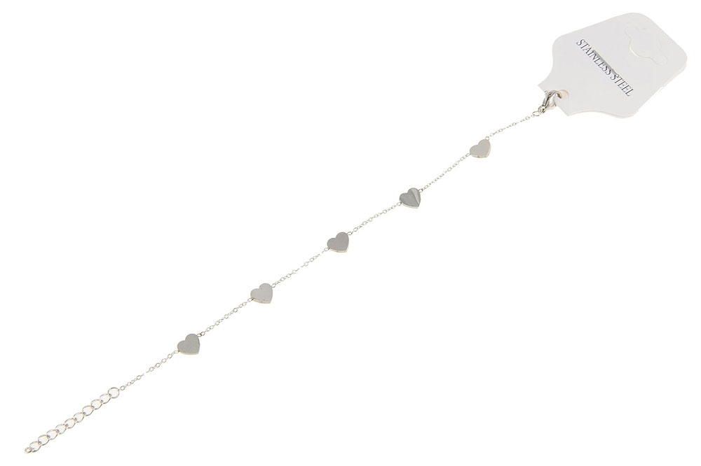 Elegancka srebrna bransoletka z ozdobnymi elementami w kształcie serc.