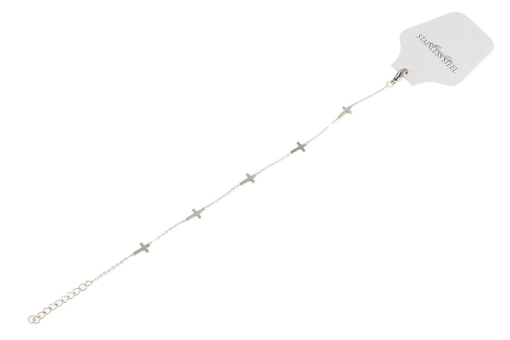 Elegancka srebrna bransoletka z ozdobnymi elementami w kształcie krzyżyków.