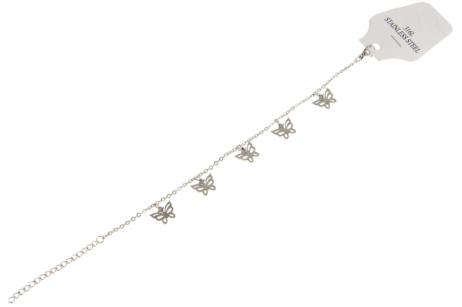 Elegancka srebrna bransoletka z ozdobnymi przywieszkami w kształcie motylków.Wymiary bransoletki: