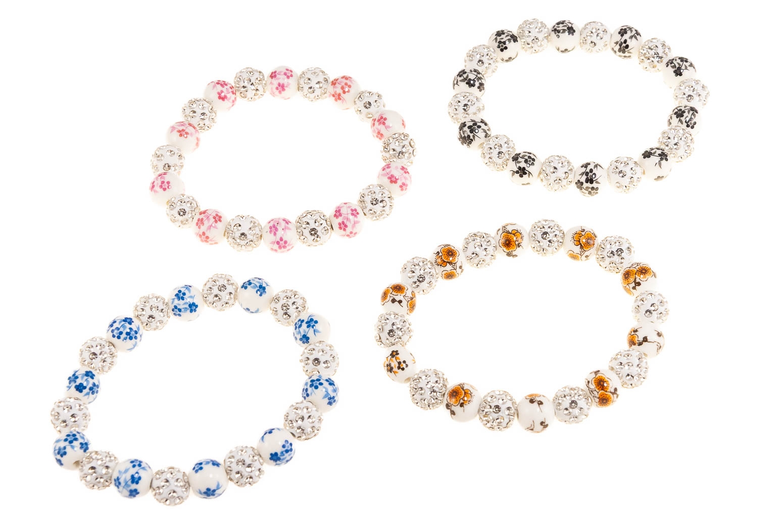 Elegancka bransoletka wykonana ze szlifowanych koralików i koralików w kwiatki.