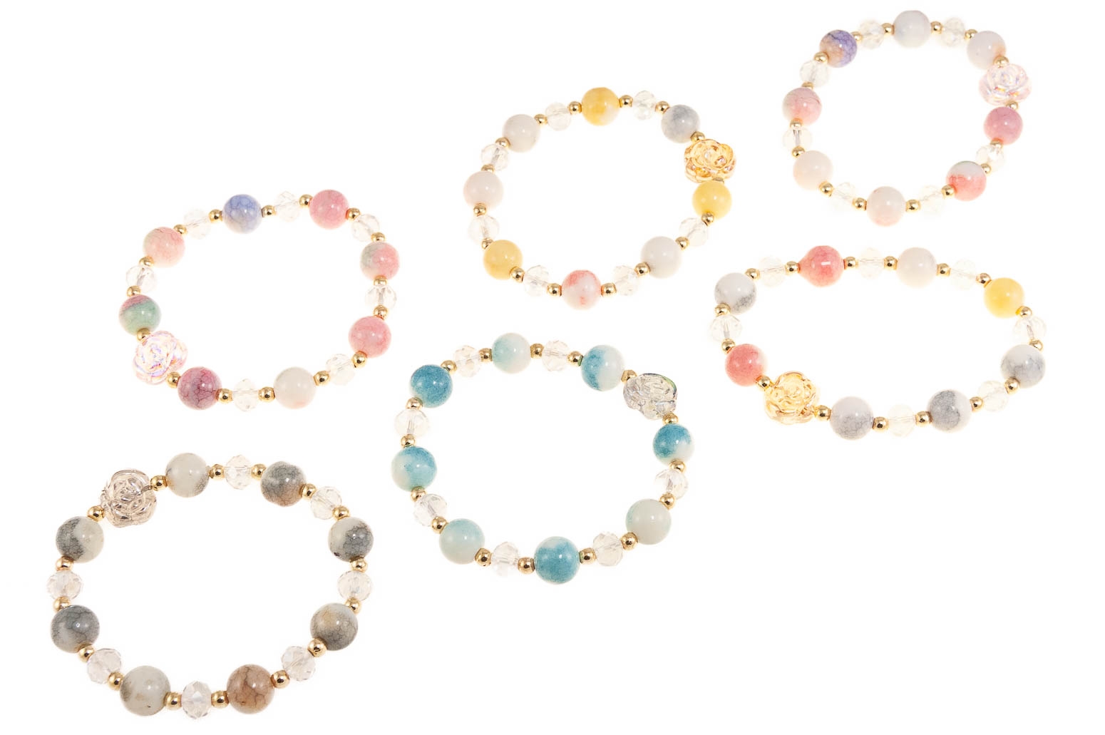 Elegancka bransoletka wykonana z koralików i różyczek.Bransoletka pięknie się mieni i posiada uroczą przywieszke.
