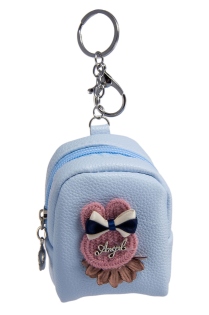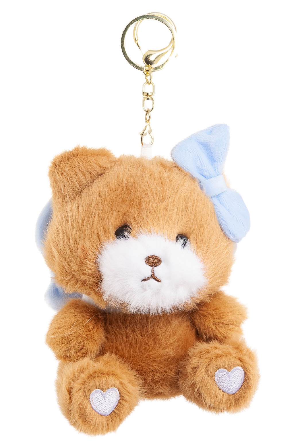 Uroczy brelok w kształcie misia z kokardką w kolorze błękitnym.