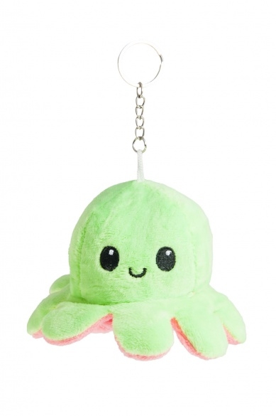 Brelok pluszowy ośmiornica dwustronny, z jednej strony zielonym a z drugiej brzoskwiniowym .