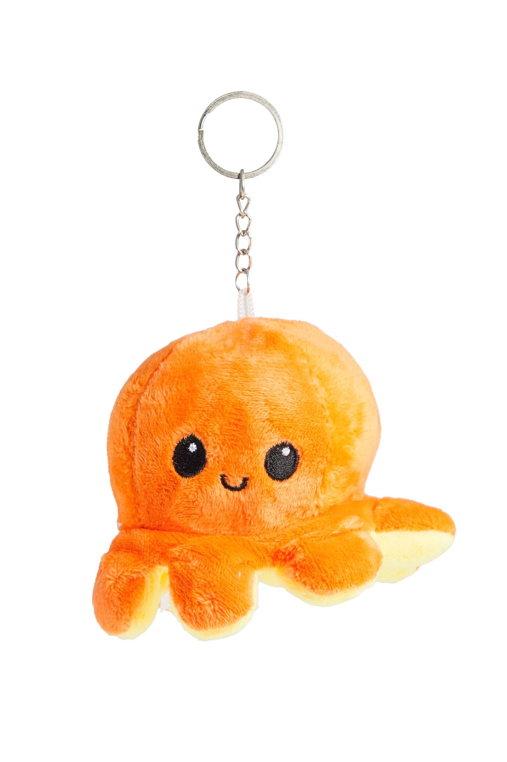 Brelok pluszowy ośmiornica dwustronny, z jednej strony pomarańczowym a z drugiej żółtym .