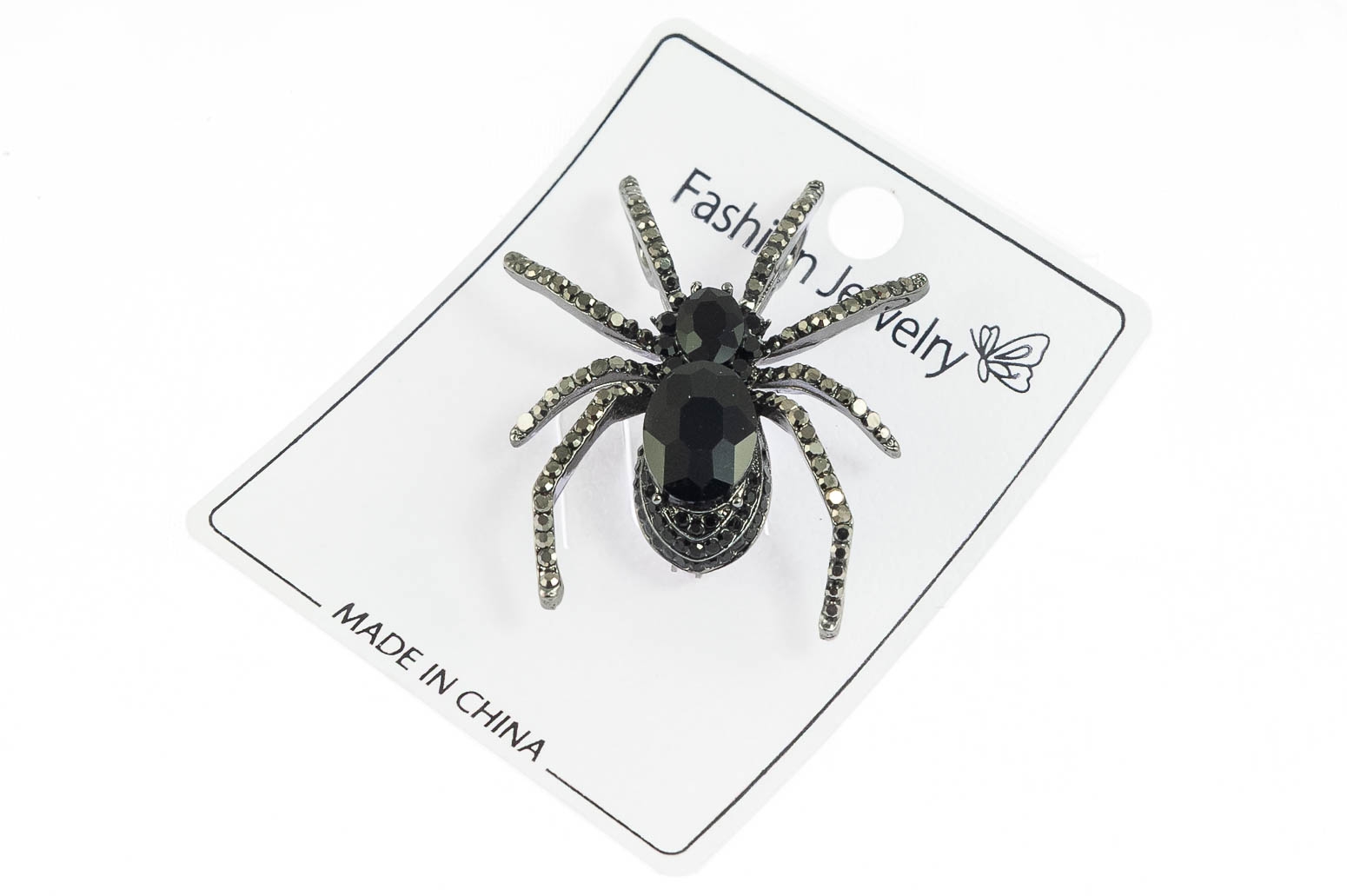 Elegancka broszka w kształcie pająka. Przywieszka w kolorze czarnym, ozdobiona szlifowanymi kamieniami.Ozdoba doda szyku każdej stylizacji.