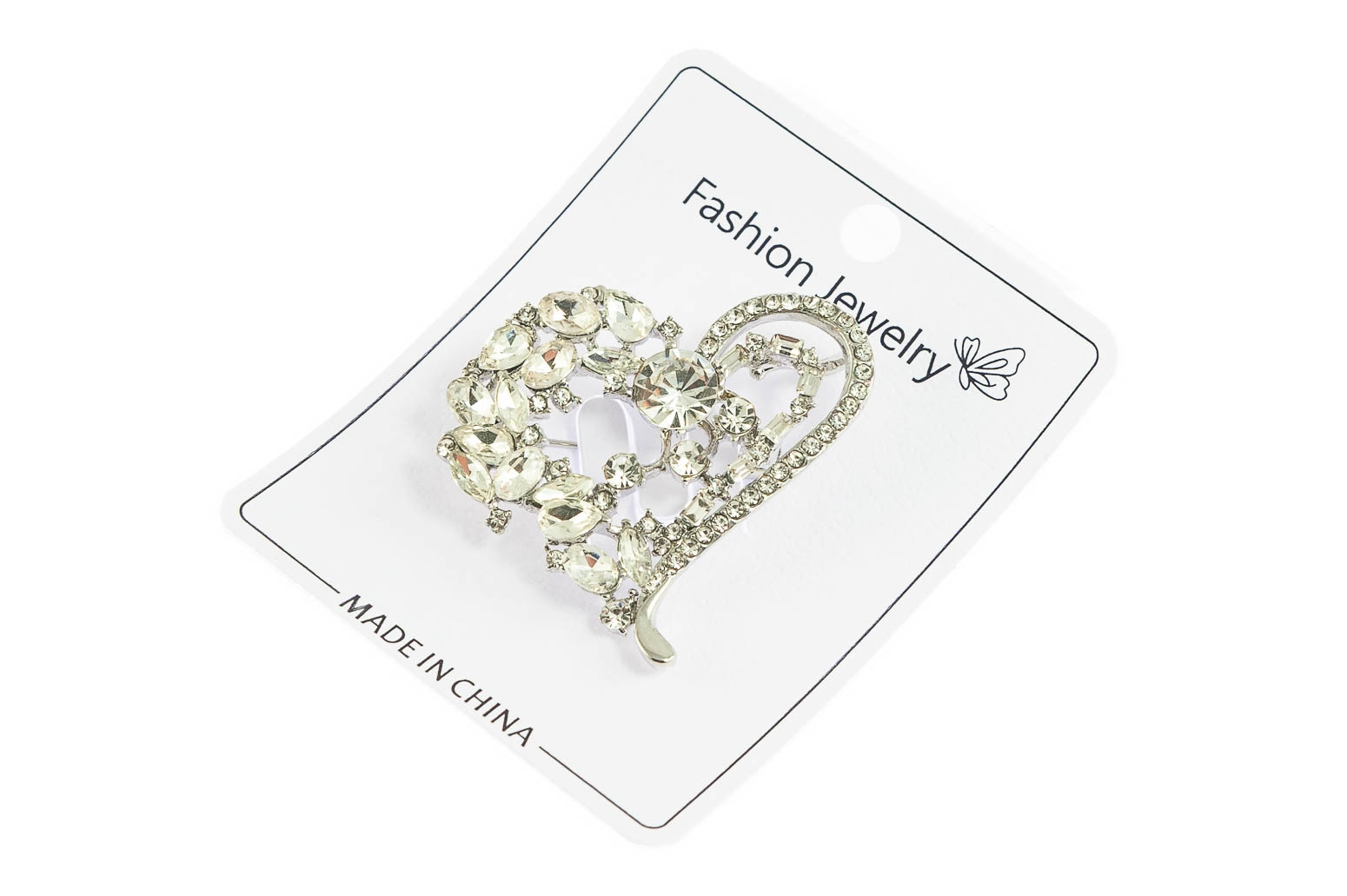 Elegancka broszka w kształcie serca. Przywieszka w kolorze srebrnym, ozdobiona szlifowanymi kamieniami.Ozdoba doda szyku każdej stylizacji.