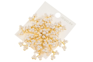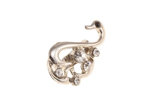 Elegancka broszka w kształcie sowy w kolorze złotym, ozdobiona kolorowymi, szlifowanymi kamieniami.