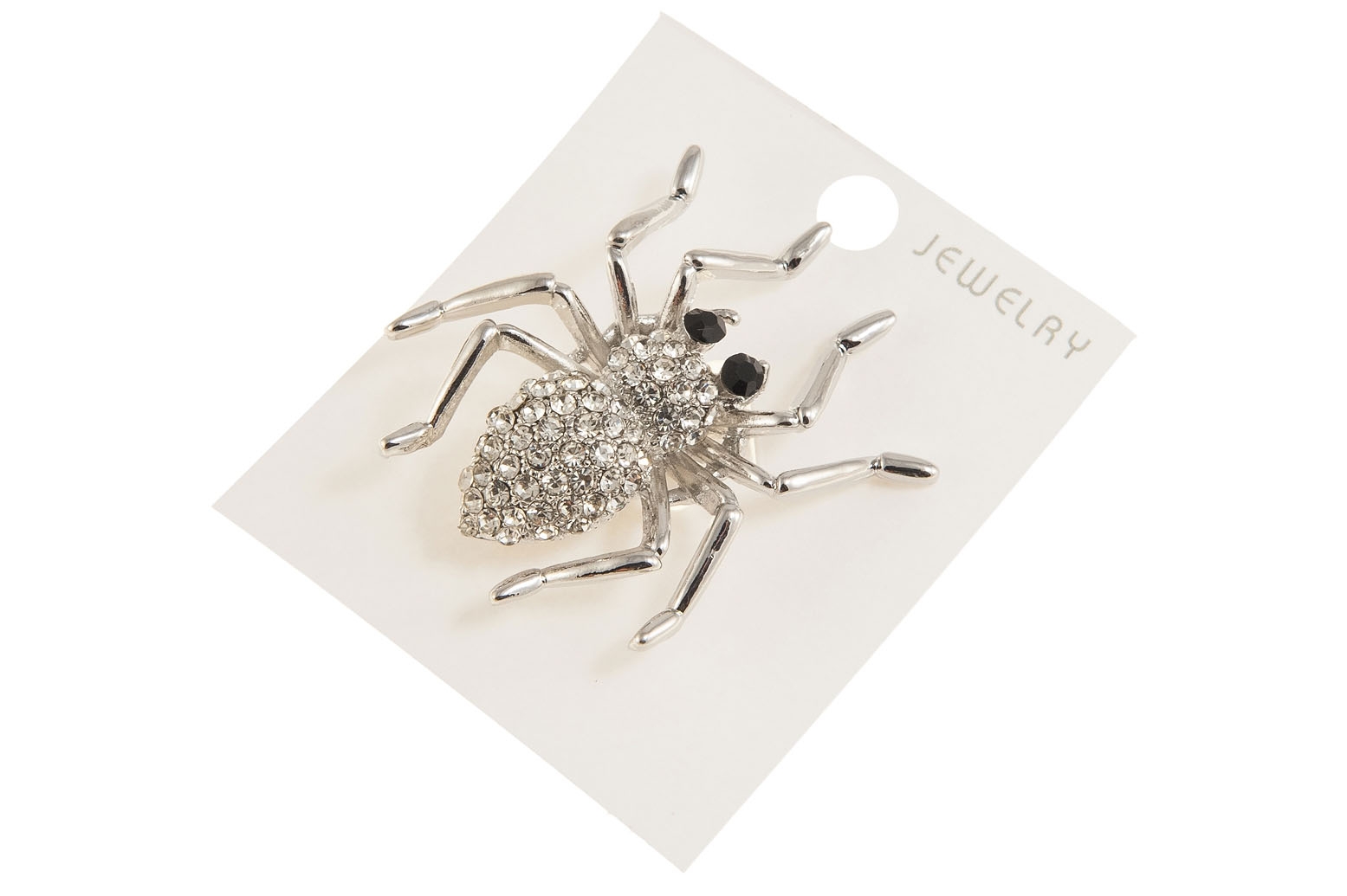Elegancka broszta w kształcie pająka. Przywieszka w kolorze srebrnym, ozdobina szlifowanymi kamieniami.