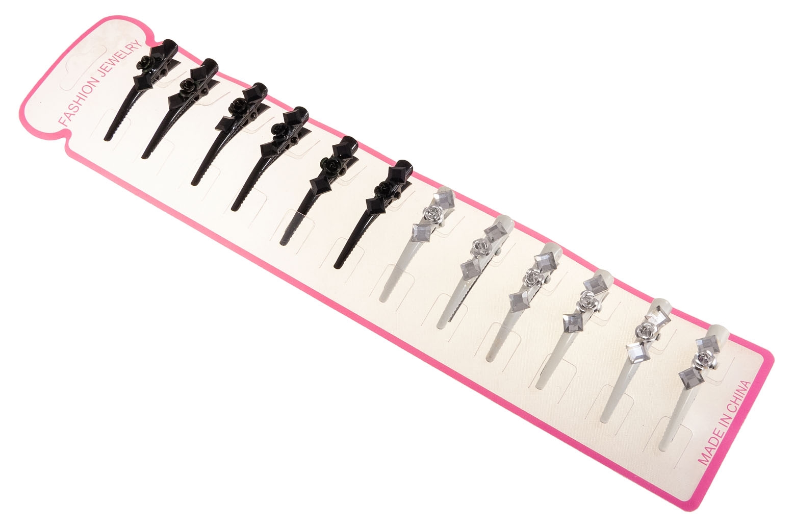 Klasyczny górniak, wykonany z trwałego materiału. Spinki ozdobione są różyczkami i szlifowanymi kamieniami.Zestaw składa się z czarnych i białych spinek.