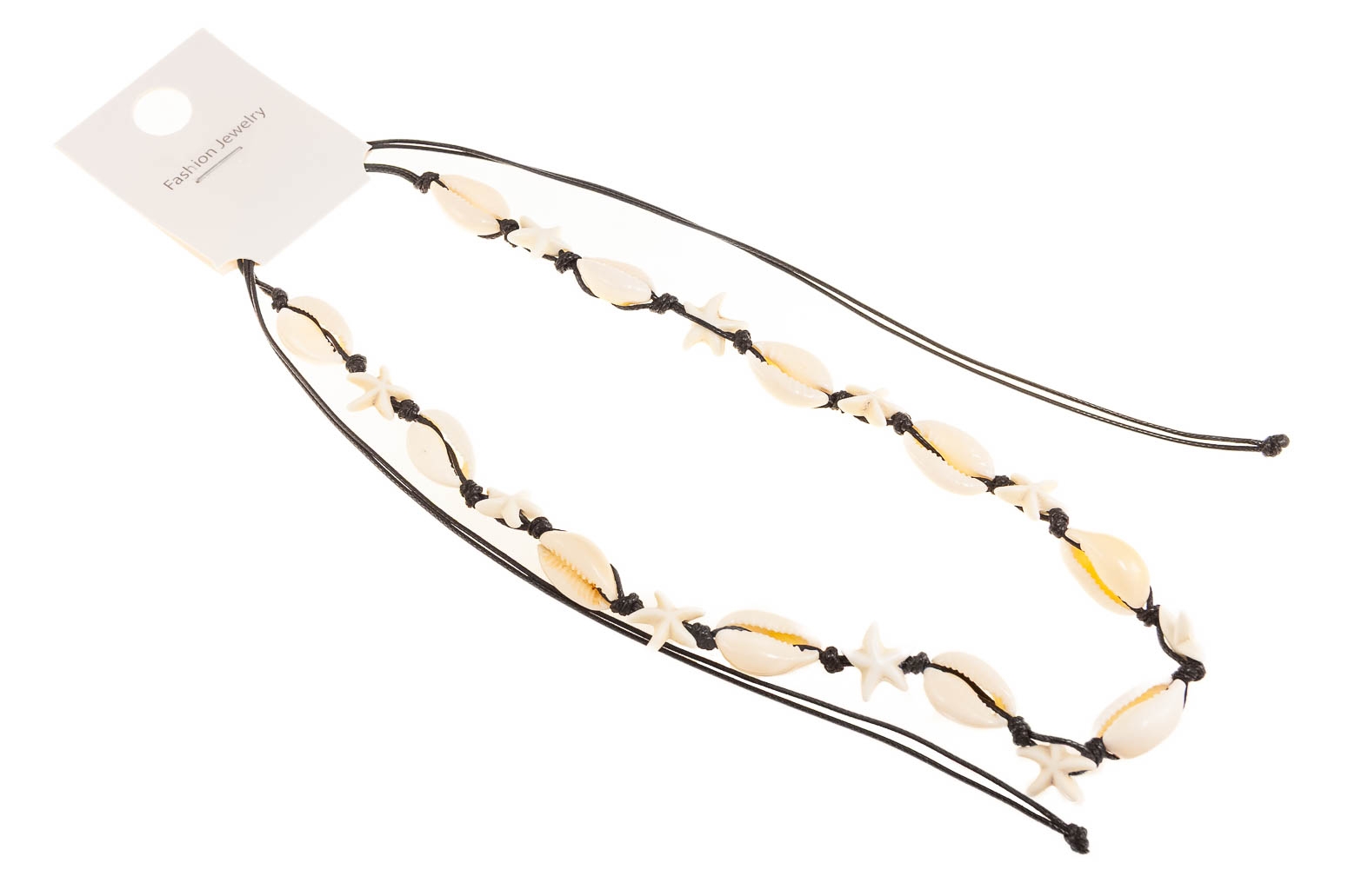 Naszyjnik składa się z czarnego sznurka i muszelek.Naszyjnik posiada regulację.
