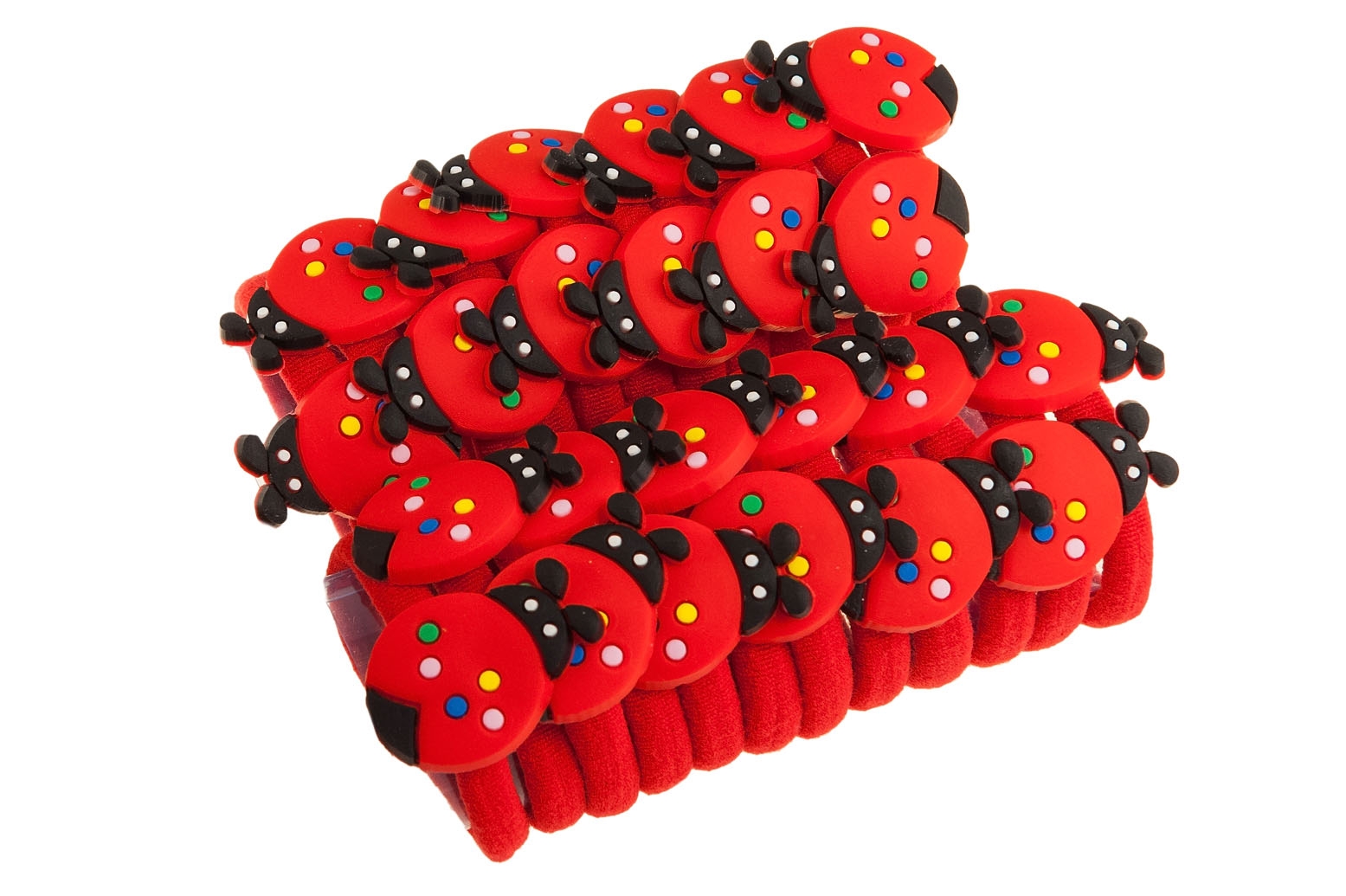 Klasyczne gumki do włosów z uroczą ozdobą w kształcie biedronki.