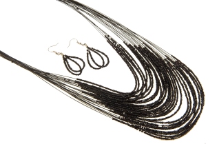 Naszyjnik ozdobiony pięknymi, kolorowymi dżetami.