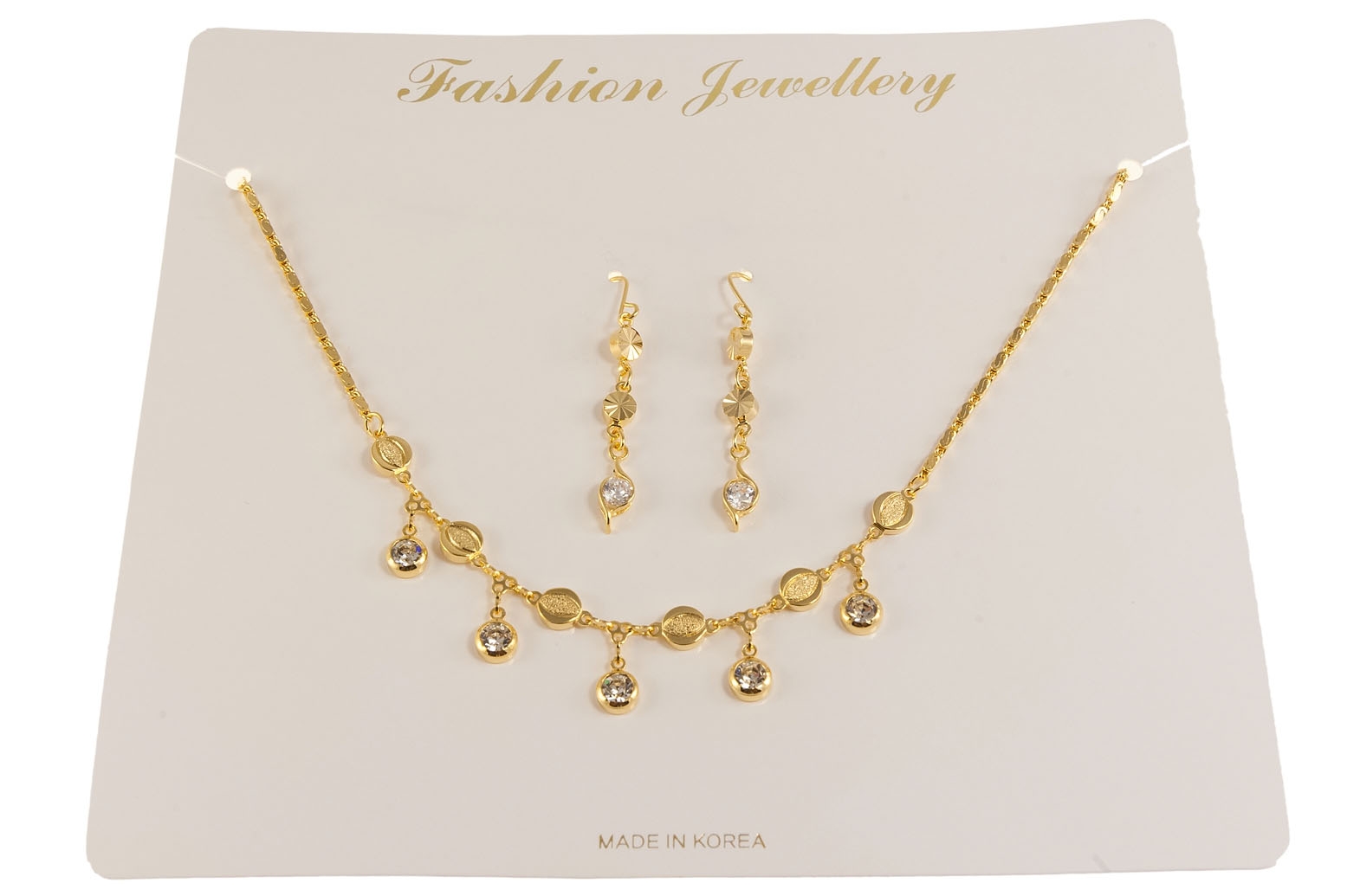 Złoty komplet ozdobiony jest szlifowanymi kamyczkami.