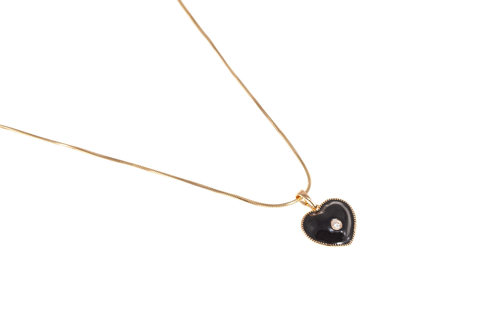 Elegancki, złoty łańcuszek z uroczą przywieszką w kształcie serca w kolorze czarnym.Wymiary naszyjnika:
