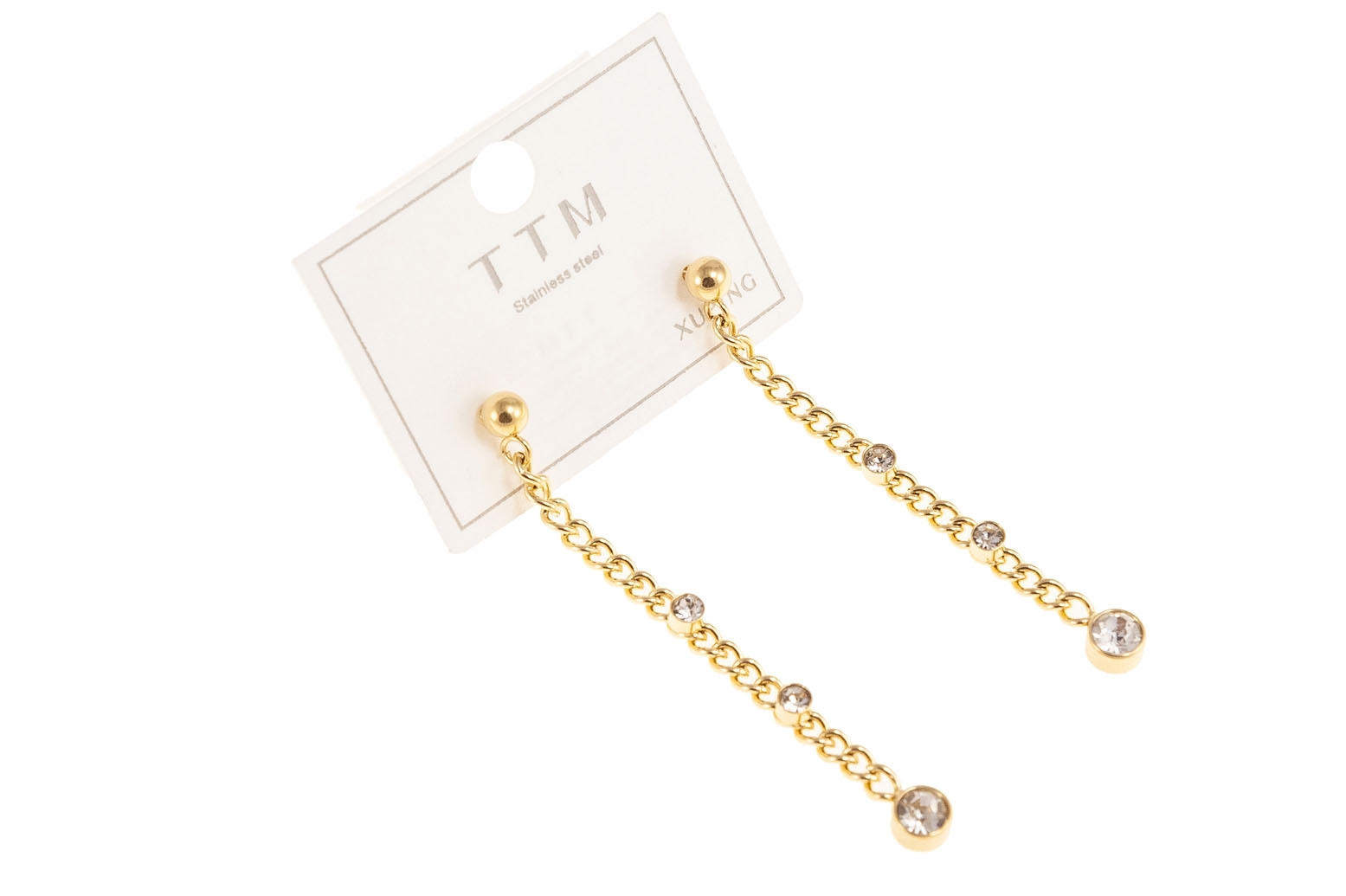 Eleganckie, długie, złote kolczyki ozdobione szlifowanymi kamieniami.Wymiary kolczyków: