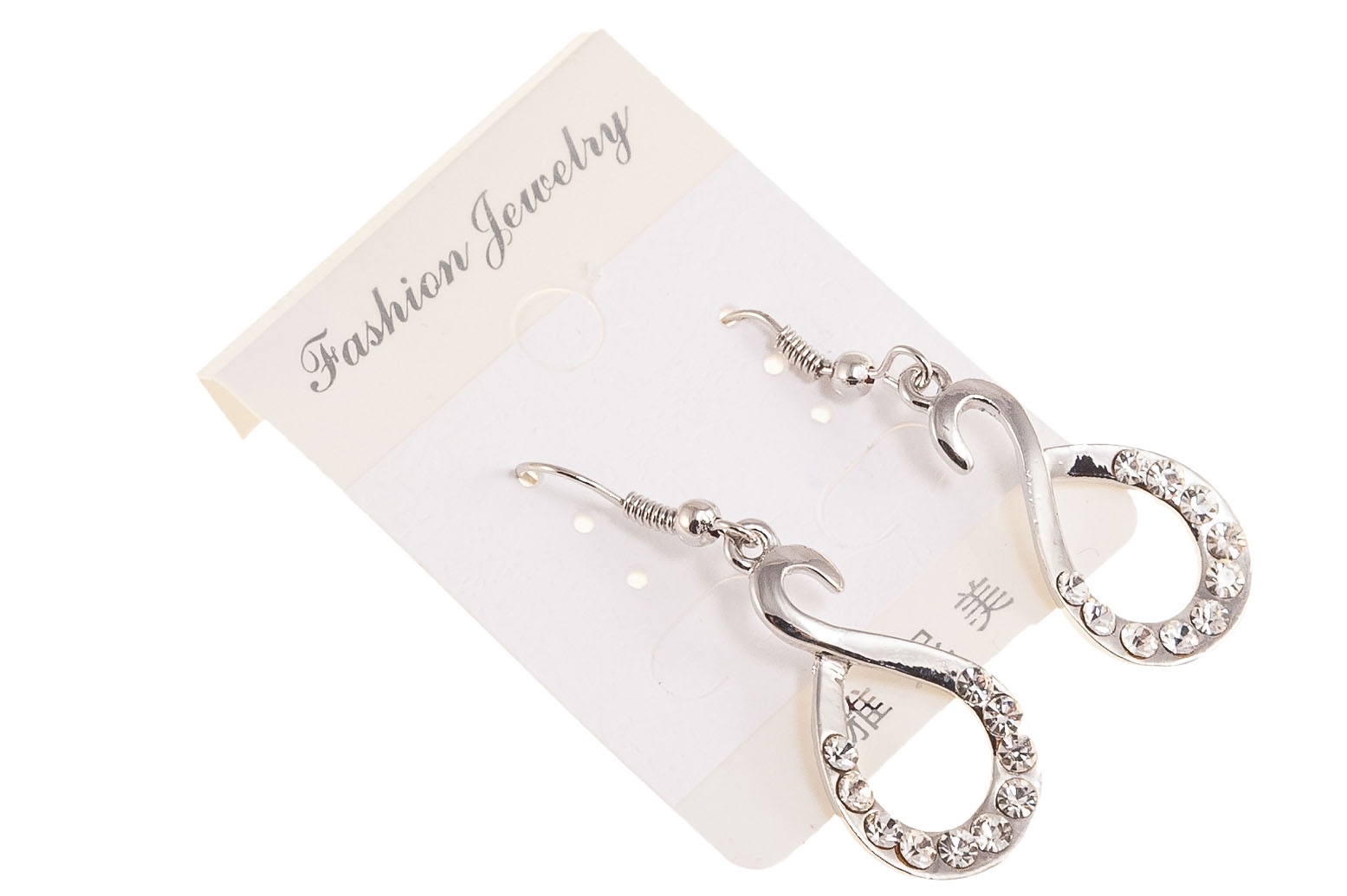 Eleganckie wiszące kolczyki w kolorze srebrnym z ozdobnymi przywieszkami.