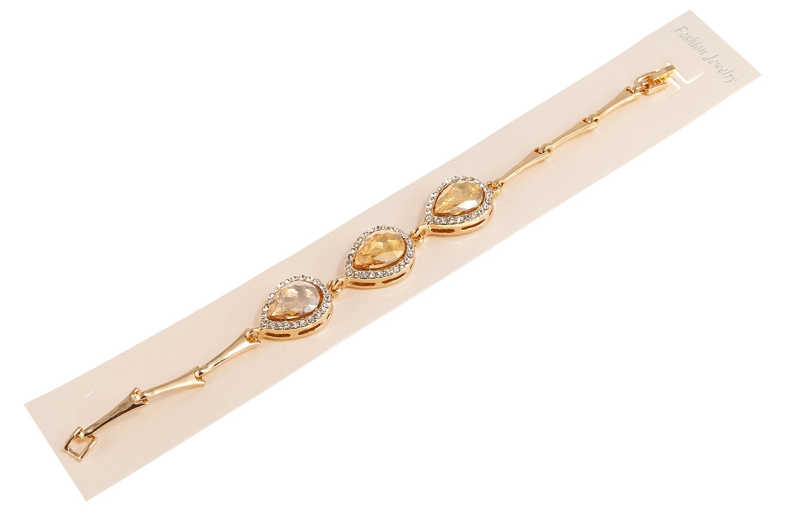 Elegancka złota bransoletka ozdobiona pięknymi szlifowanymi kamieniami.