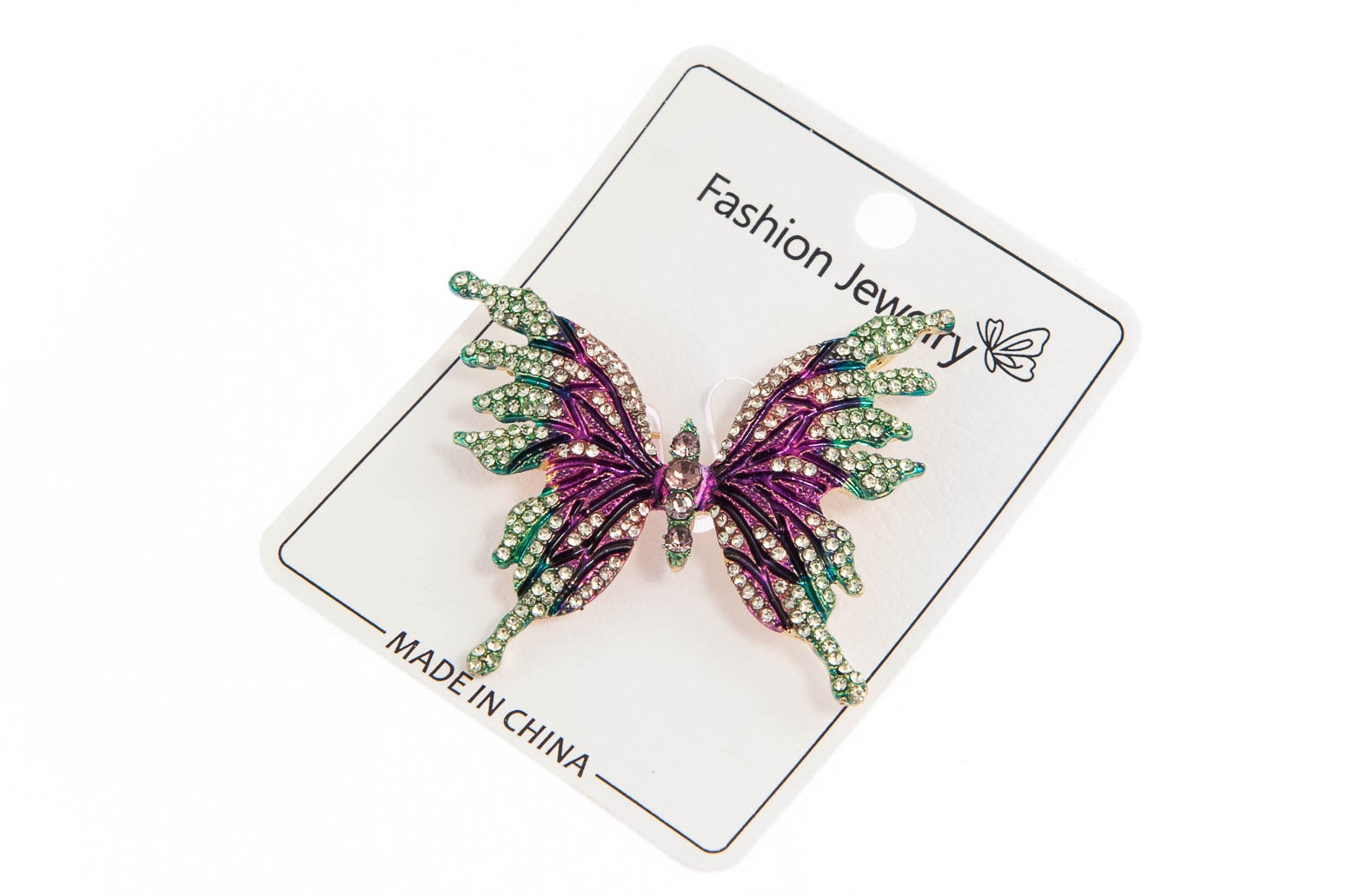 Elegancka broszka w kształcie motylka. Przywieszka wielo kolorowa, ozdobiona szlifowanymi kamieniami.