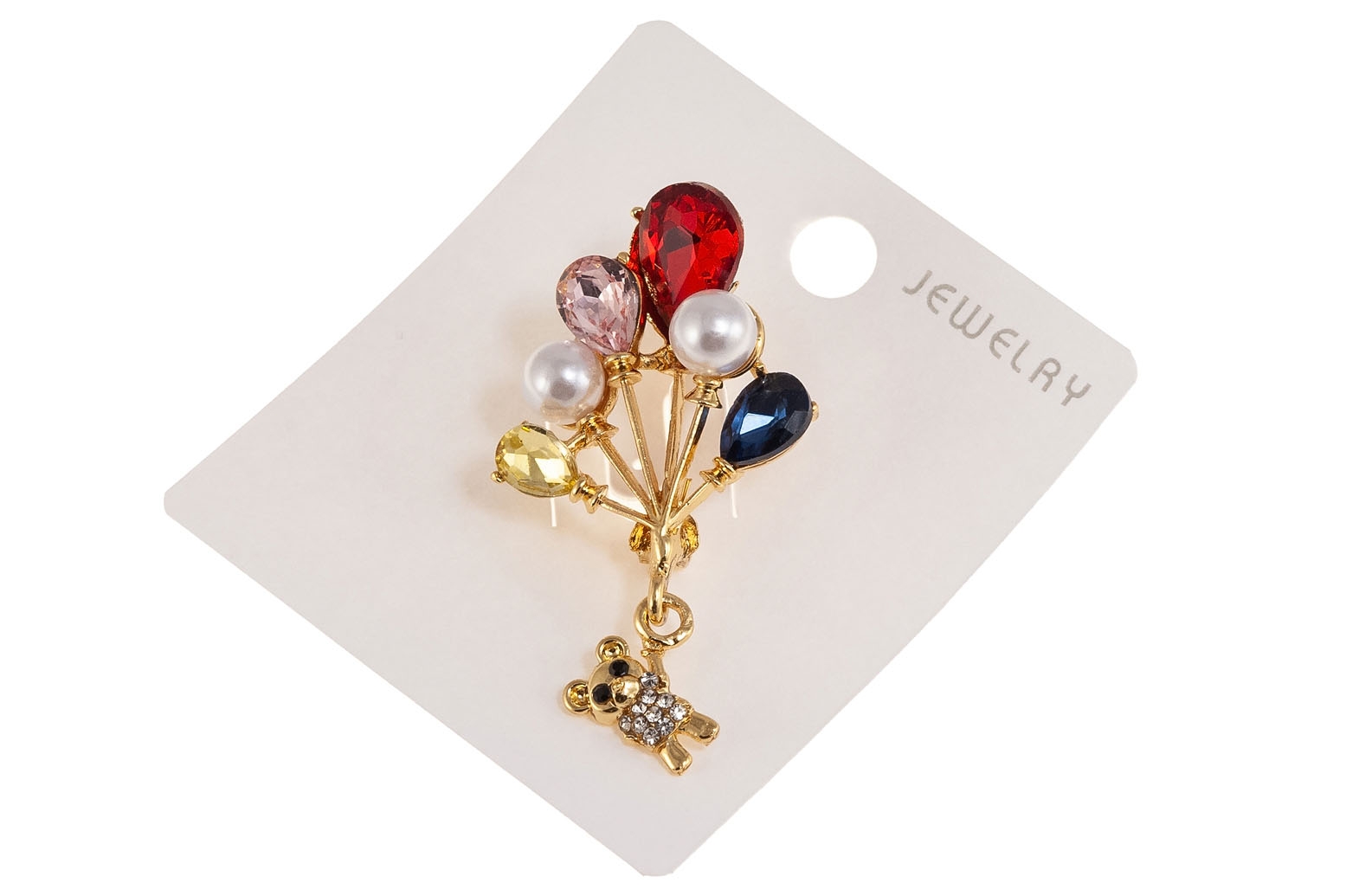 Elegancka broszka w kolorze złotym, ozdobiona szlifowanymi kamieniami.