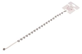 Elegancka, srebrna bransoletka z czarnymi kropeczkami i przywieszkami w kształcie krzyżyka, piórka i okręgu.Wymiary bransoletki: