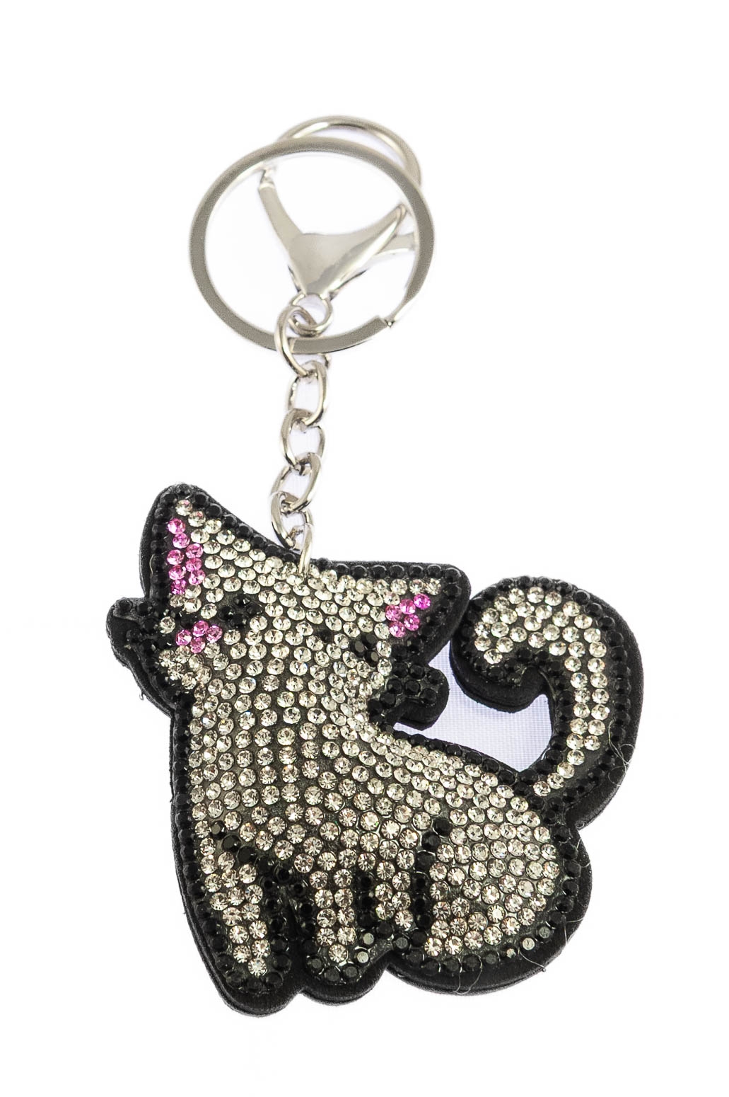Elegancki brelok w kształcie kotka, ozdobiony dżetami w kolorze czarnym.