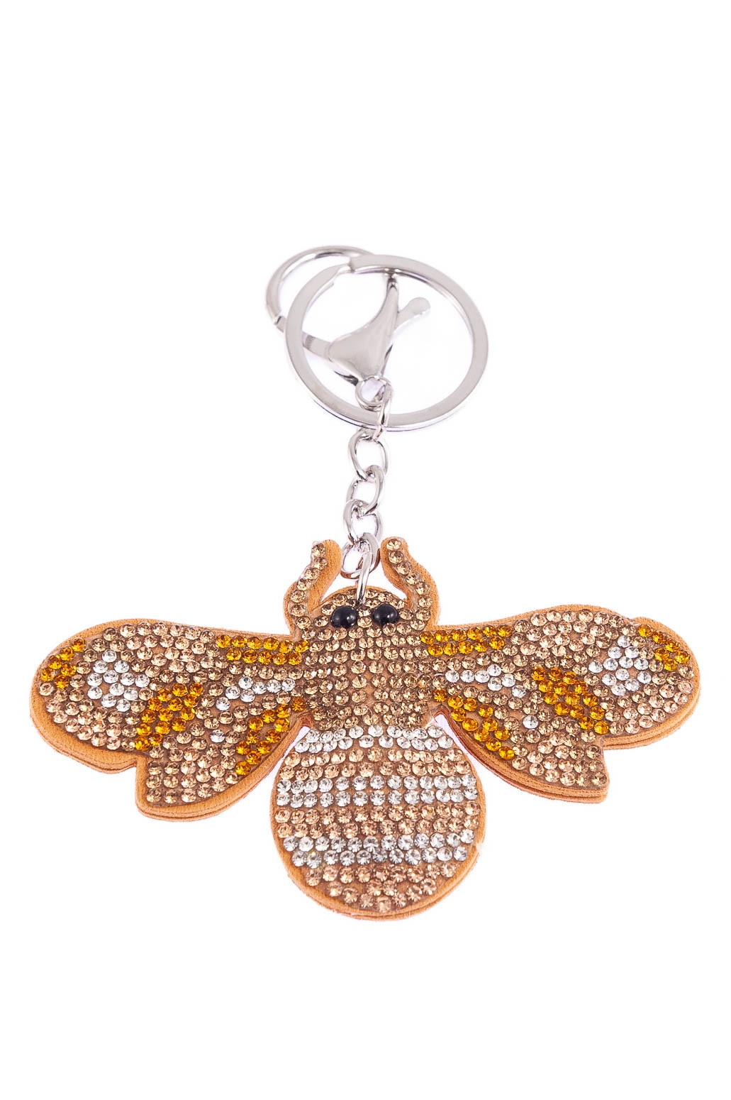 Elegancki brelok w kształcie osy, ozdobiony dżetami w kolorze żółtym i beżowym.