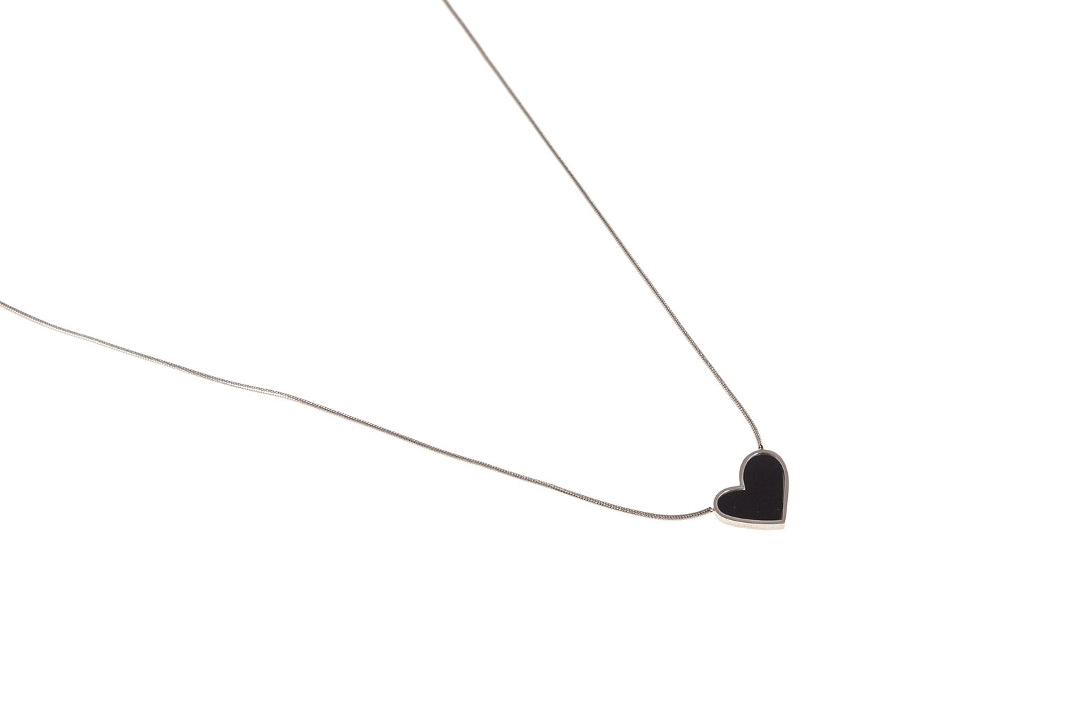 Elegancki srebrny naszyjnik z czarnym serduszkiem