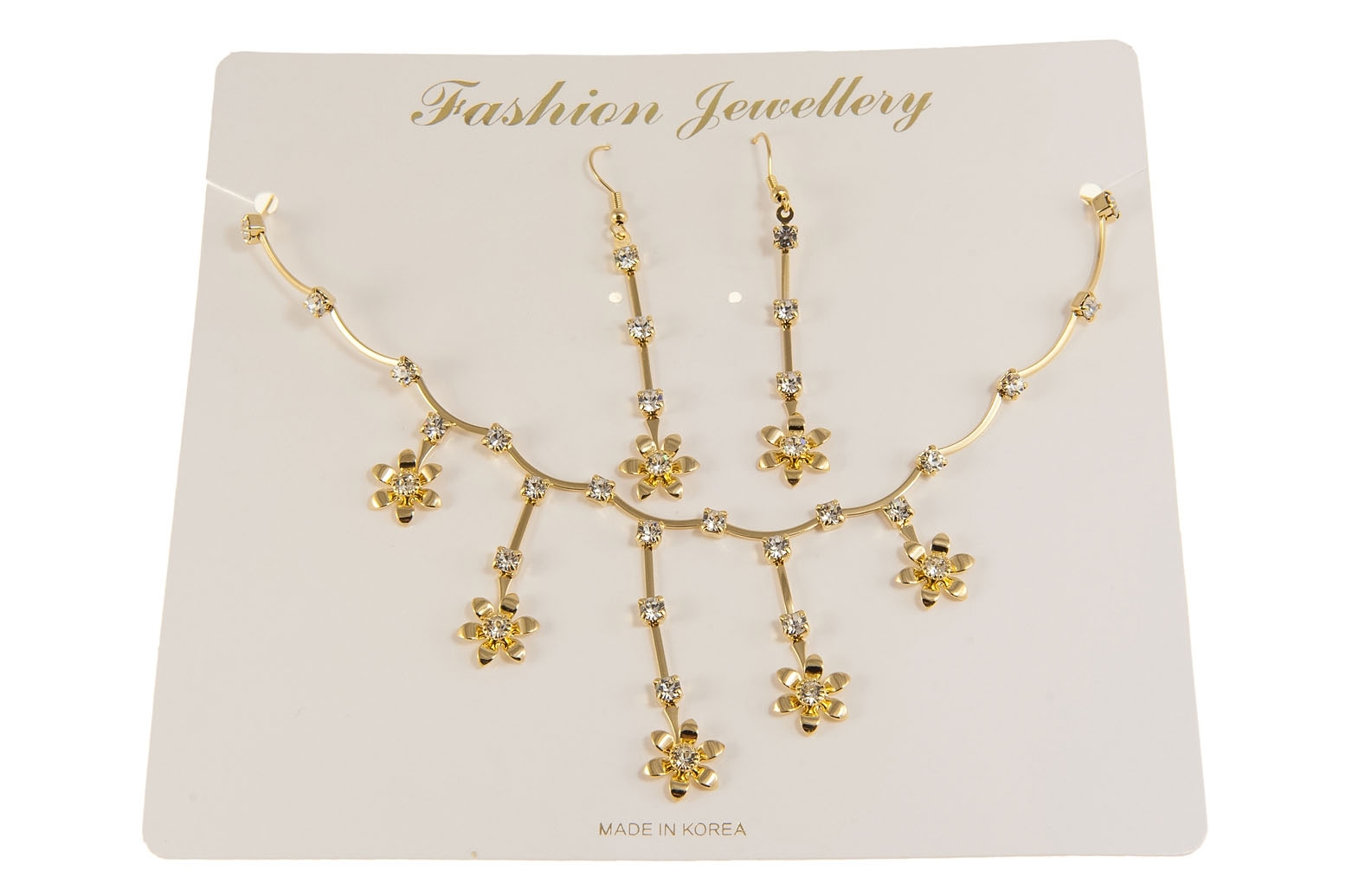Elegancki łańcuszk z kwiatuszkami z pasującymi kolczykami.