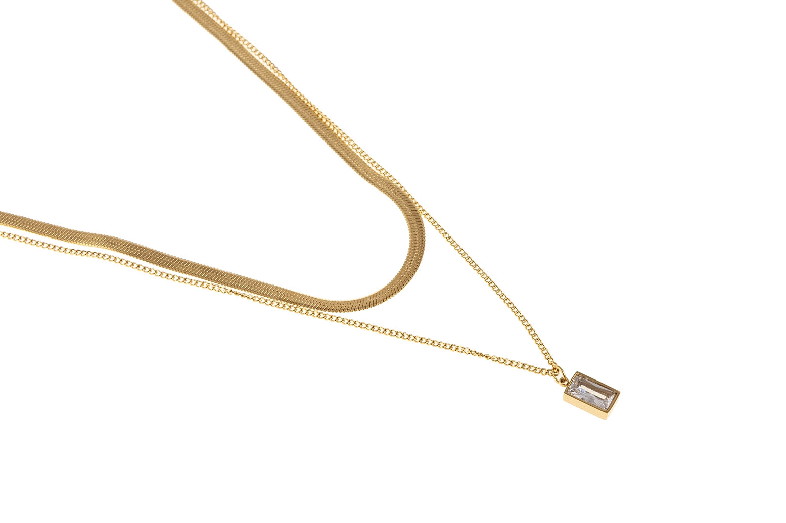 Elegancki złoty naszyjnik z błyszczącym prostokątem