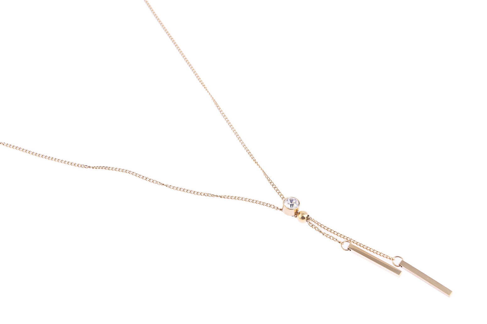 Elegancki, złoty łańcuszek z uroczą przywieszką, ozdobioną pięknie mieniącym się dżetem.Wymiary naszyjnika: