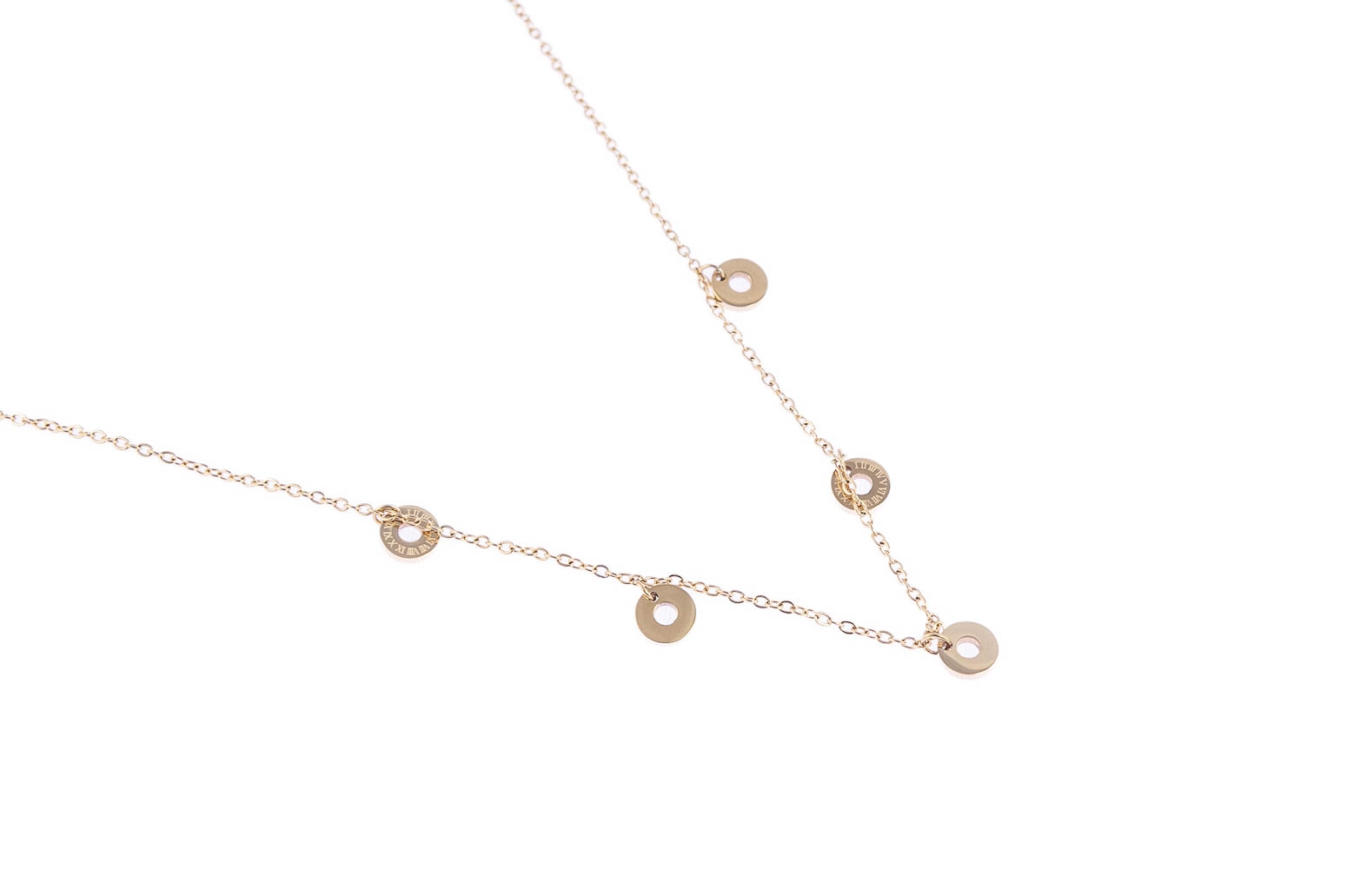 Elegancki, złoty łańcuszek z przywieszkami w kształcie okręgów.Wymiary naszyjnika: