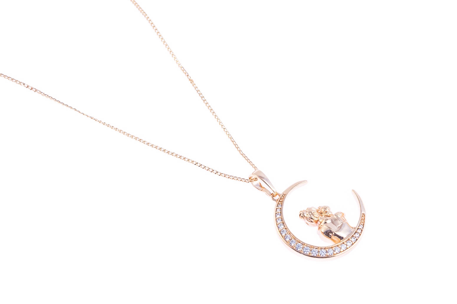 Elegancki, złoty łańcuszek z uroczą przywieszką w kształcie księżyca, mamy i dziecka.Wymiary naszyjnika: