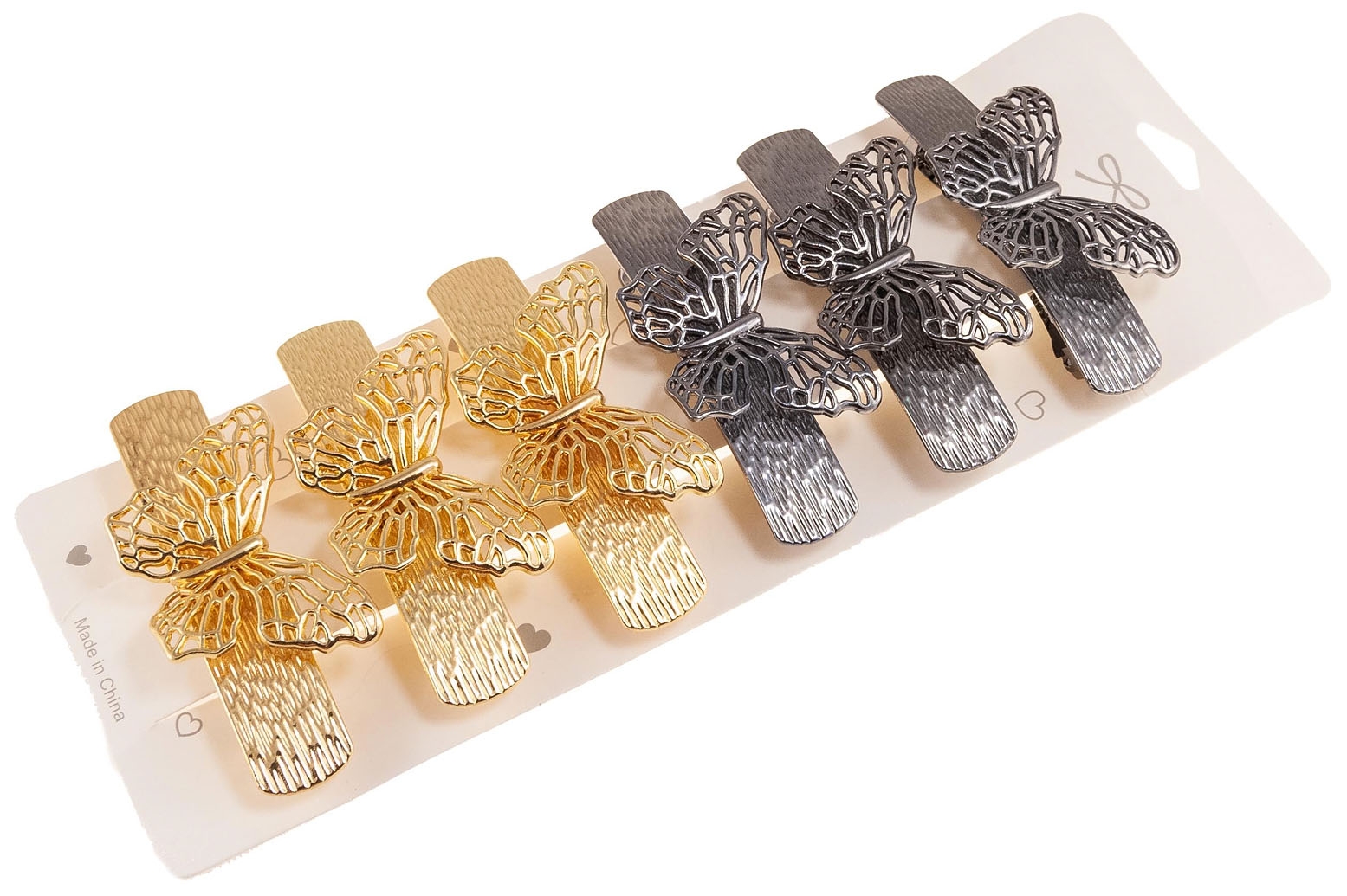 Eleganckie automaty z pięknym motylem.Zestaw składa się z sześciu spinek w złotym i grafitowym kolorze.