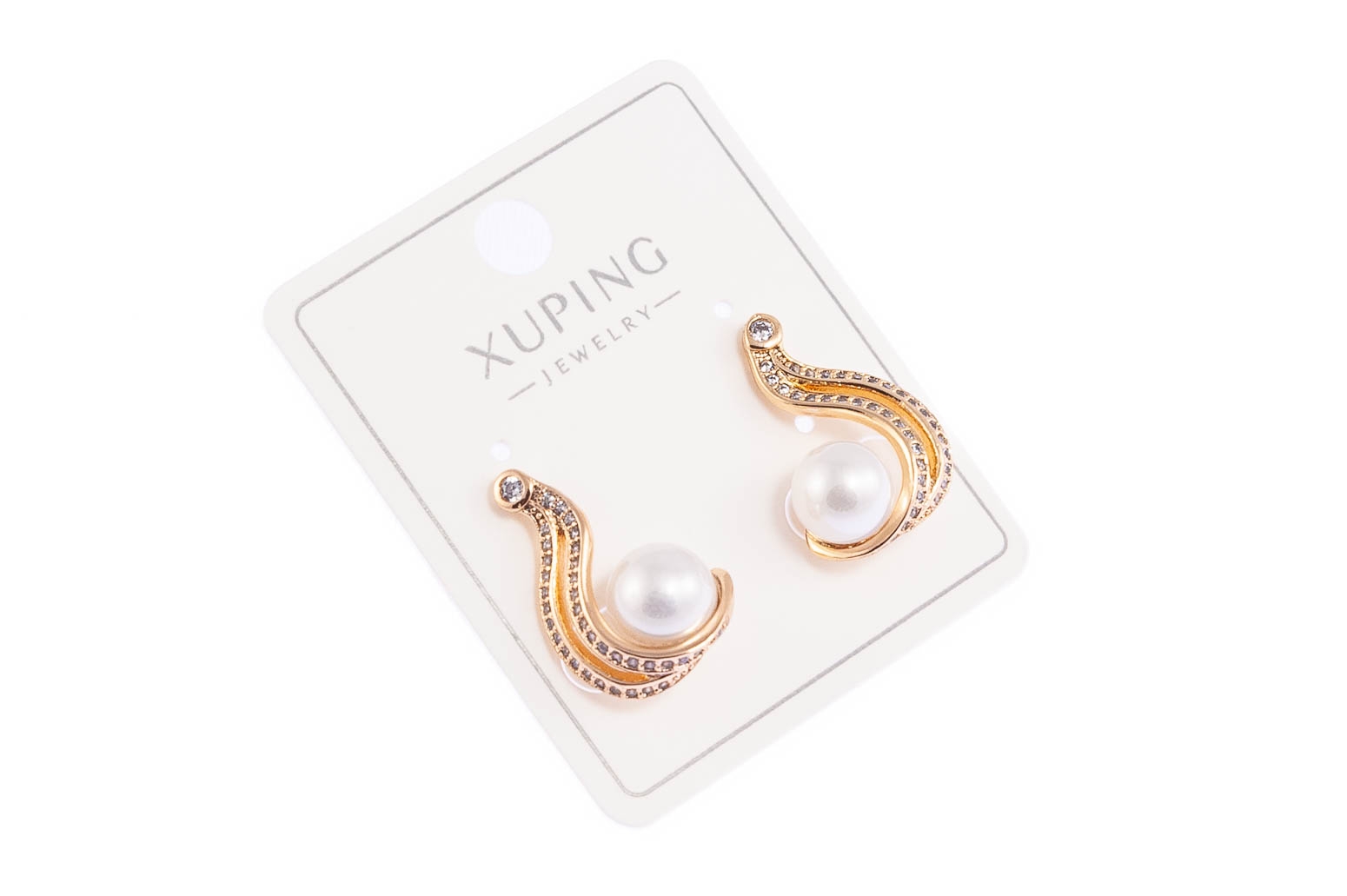 Eleganckie kolczyki, ozdobine mieniącymi się dżetami i perełkami. Kolczyki w kolorze złotym.
