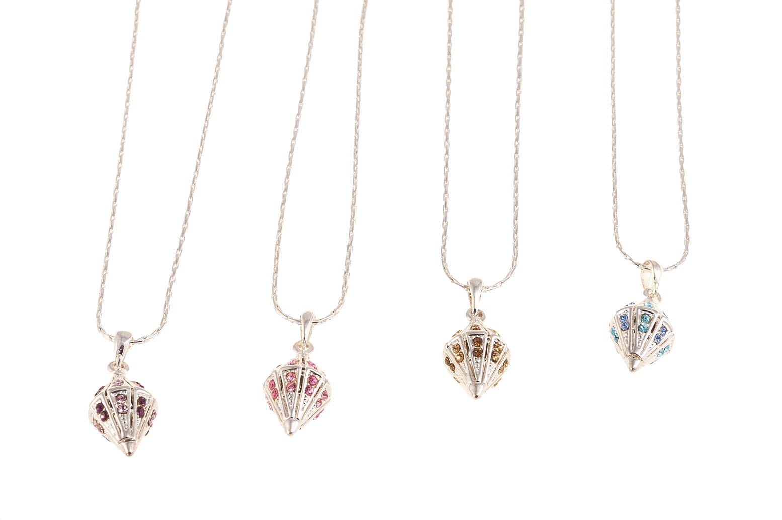 Naszyjnik ozdobiony pięknymi, kolorowymi dżetami.