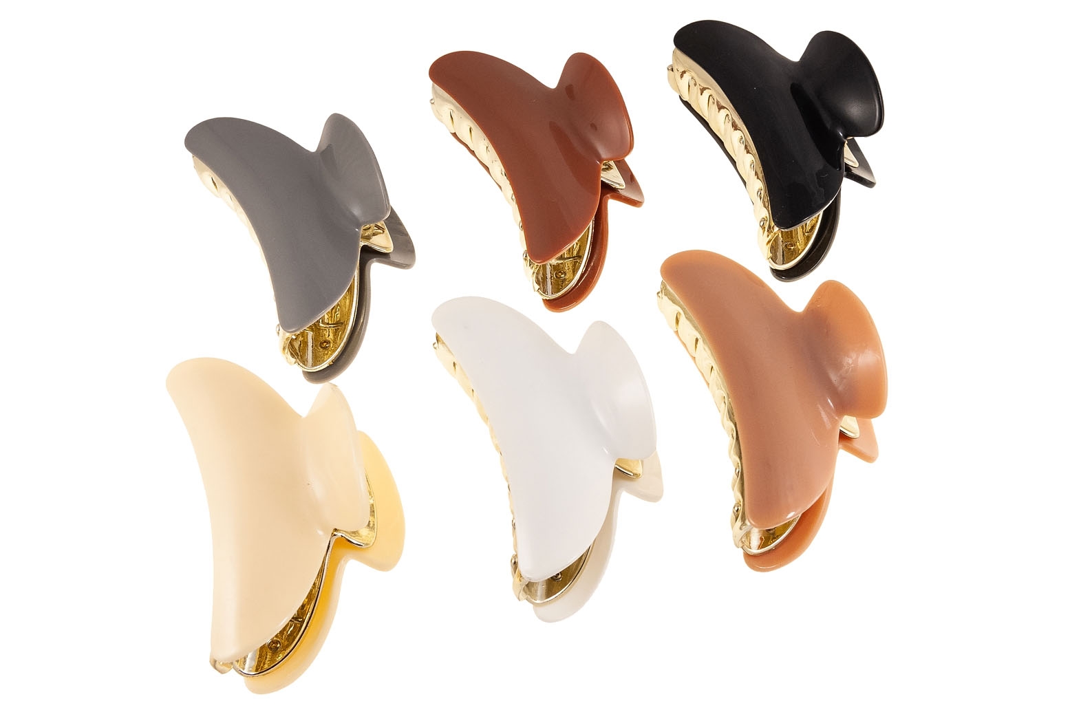 Eleganckie spinki do włosów wykonan z wytrzymałego materiału, ze złotym wykończeniem.