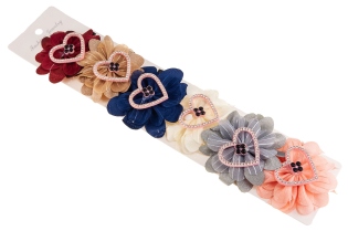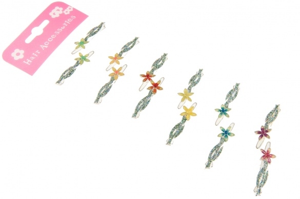 Eleganckie spinki do włosów z kolorowymi kwiatkami. Spinki ozdobione są srebrnym brokatem.